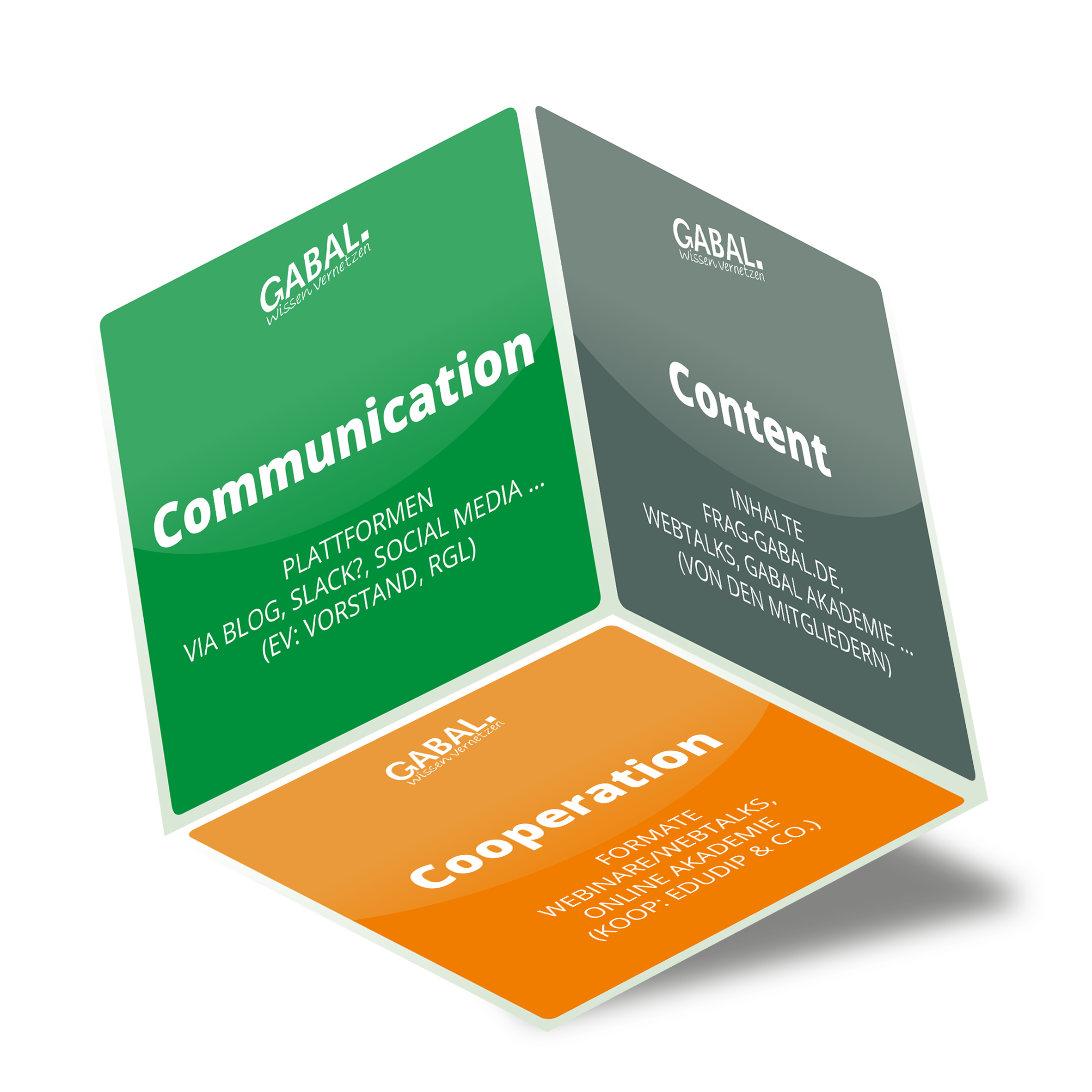 Denn vieles wäre erstrebenswert, aber mit vorhandenen oder realistisch denkbaren Ressourcen jenseits der e.V.-Möglichkeiten, z.B. eine GABAL-Online-Akademie. Eine eigene Plattform könnte der Verband sich nur mit deutlich höheren Mitgliedsbeiträgen leisten… Doch einzelne Elemente lassen sich realisieren – oder wir haben sie bereits, siehe eben Webtalks als Format (Webinar) auf edudip (Communication) mit Inhalten von Mitgliedern (Content).