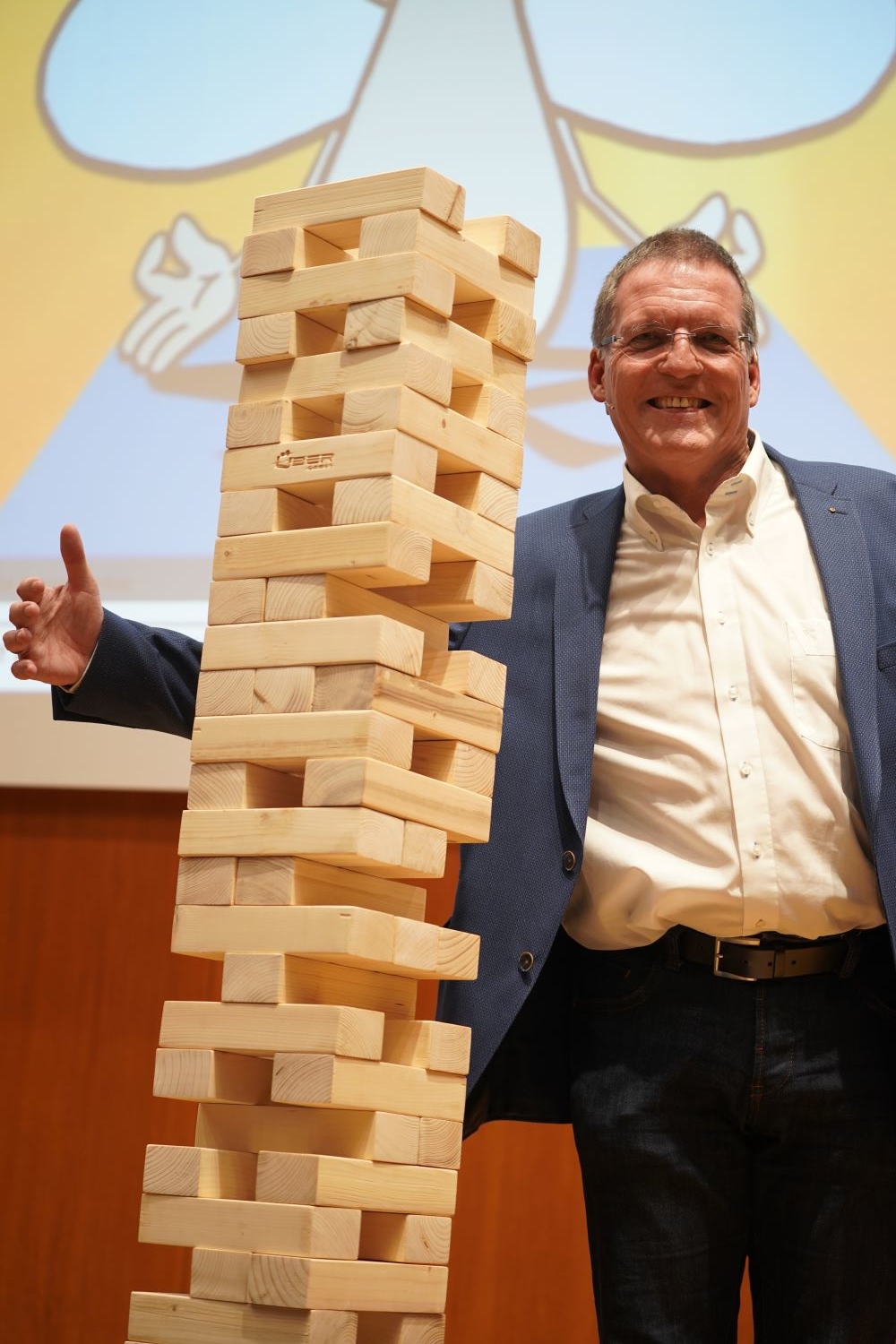 Eine Metapher für letzteres bot ein riesiges Jenga-Spiel auf der Bühne. Eindrucksvoll wurden dort Bauklötze von unten aus dem Turm genommen, um sie obenauf zu stapeln – und die Turmkonstruktion zwar höher, gleichzeitig aber gefährlich instabil werden zu lassen. Mit den Bankentürmen im Hinterkopf wurde so manchem im Saal mulmig.