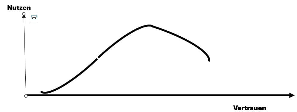 Dr. Müller zeigte dann an mehreren Kurvenverläufen auf, dass Vertrauen sich wie jeder andere „Wert“ polar in einem gesunden Bereich von klugenen Vertrauen bis zum naiven Vertrauen abspielt. Beide Ausprägungen können sich jedoch nach Schulz von Thun zu Übertreibungen mit Nachteilen entwickeln: zuviel (naives) Vertrauen kann zu Leichtgläubigkeit und Ausnutzen führen, zuwenig (kluges) Vertrauen zu Argwohn und Misstrauen führen.