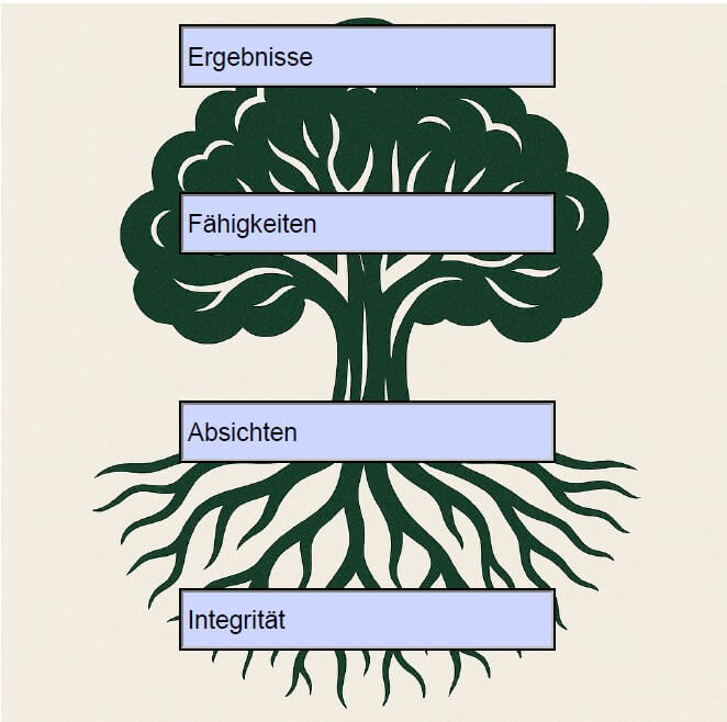 Die von Susanne Tietze vorgestellte Baum-Metapher mit den Begriffen „Charakter“ in Wurzel und Stamm sowie „Kompetenz“ in Zweigen und Früchten unterstrich sie mit dieser von ihr ihr entwickelten Grafik:
